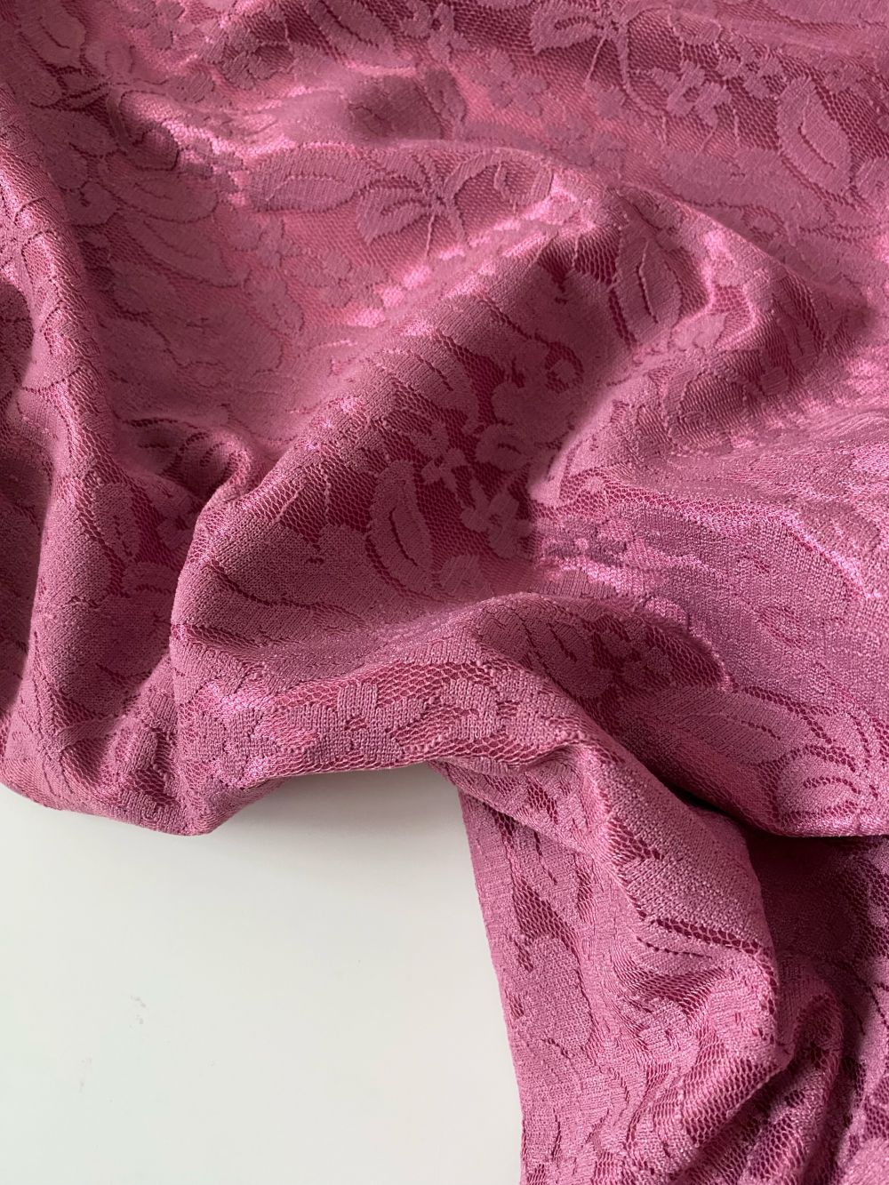 Гипюр на атласе розовый