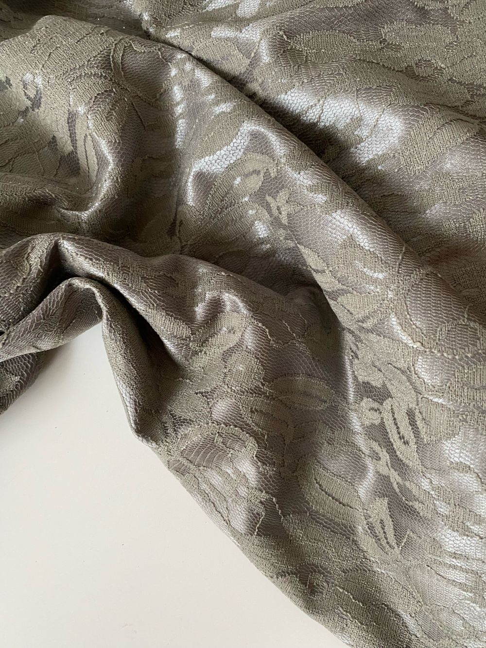 Гипюр на атласе серый