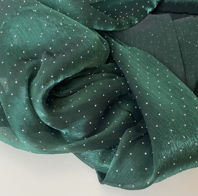 Органза с мелкими стразами изумруд 8 купить в Минске, цена, описание